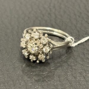 Bague Or blanc 18K – double diamants taille rose – T53/54 – 5.15g