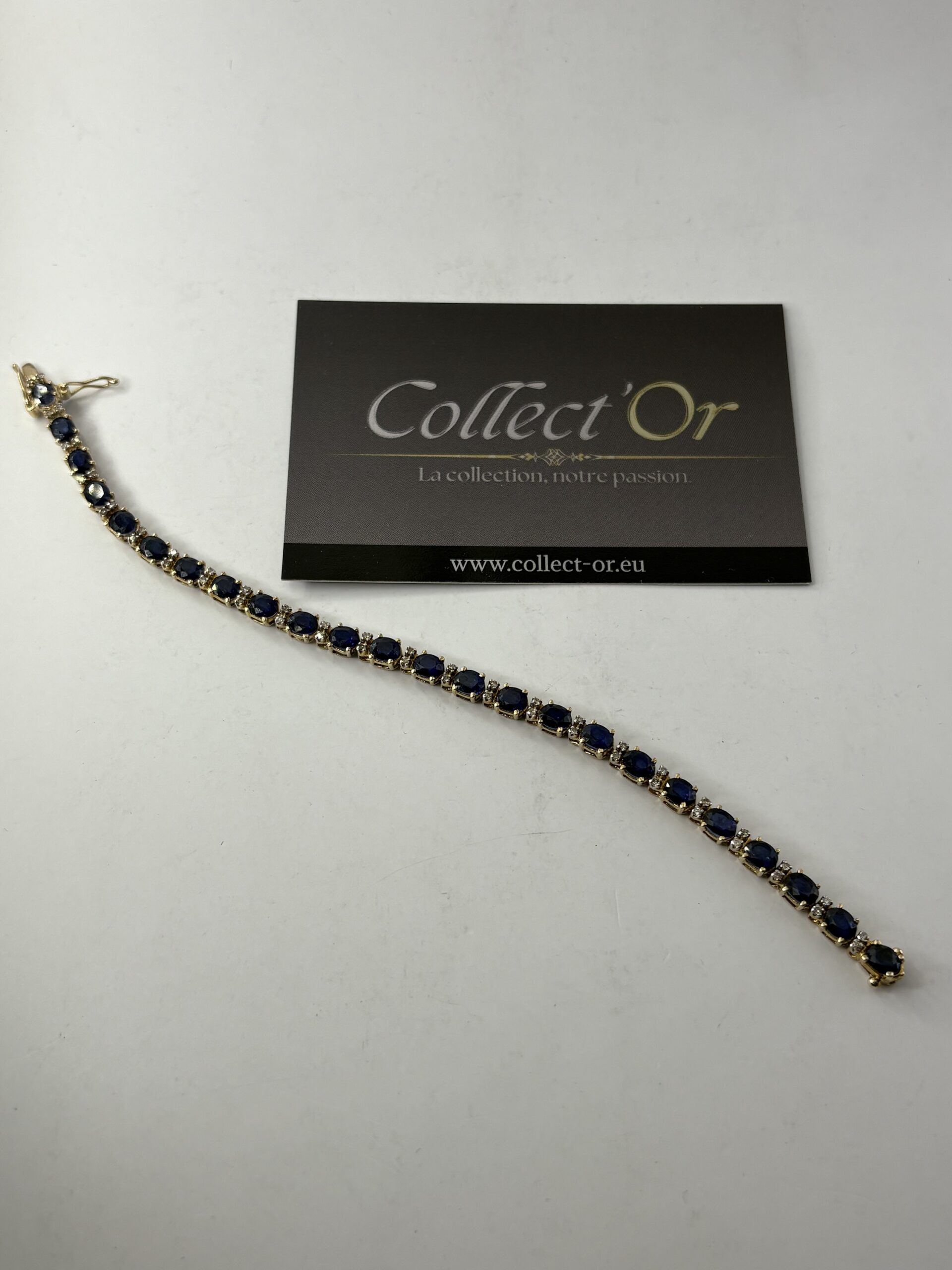quantité de Bracelet or 9k avec pierres bleues - 8.59g (6.19g or net estimé) - 17 cm
