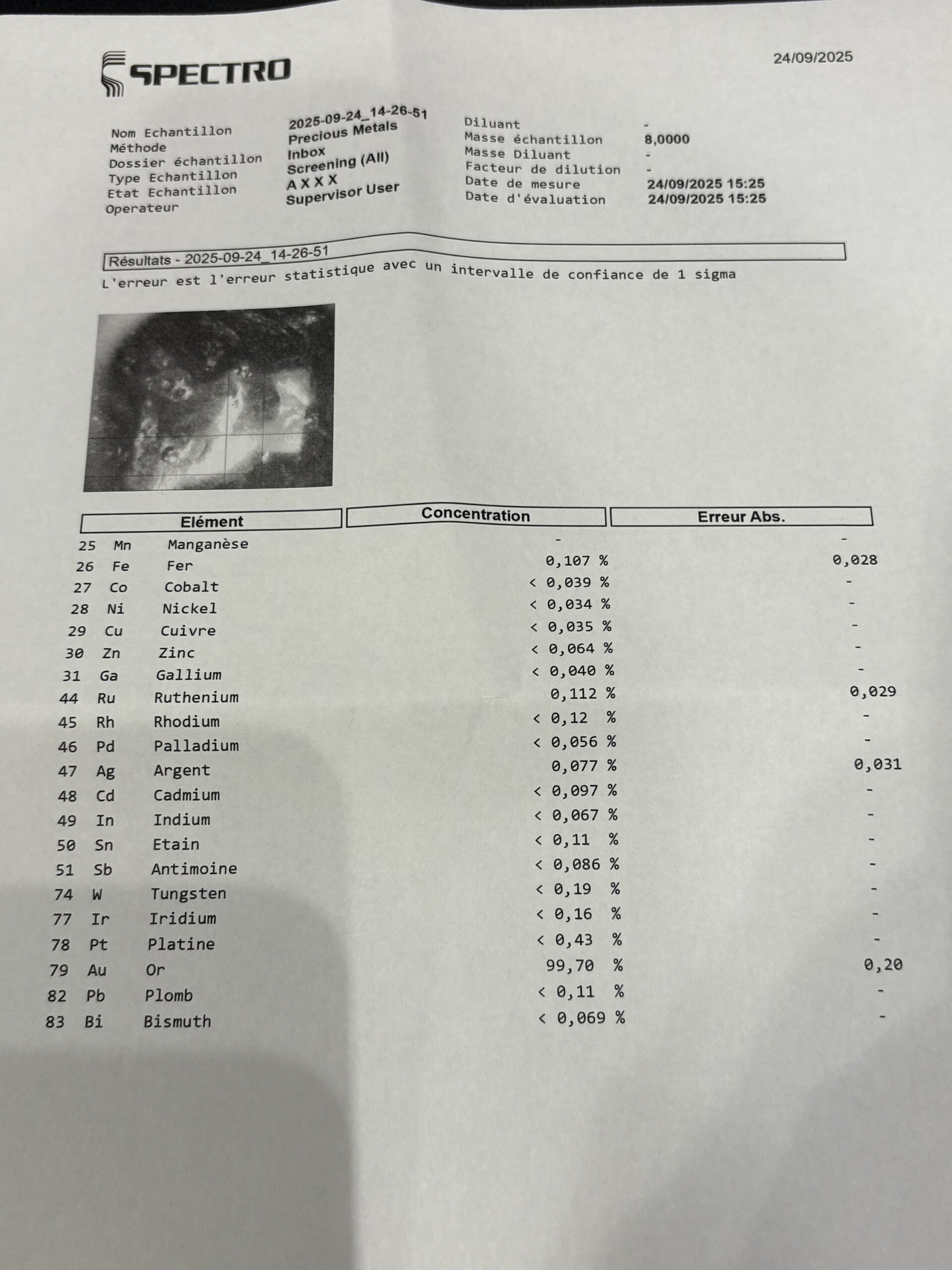 Vous trouverez dans les photos les relevés du spectromètre, testé à deux endroits.